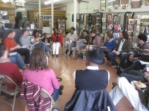 [Baltimore – at Red Emma’s 2640 space] Michael Benevento, Scott Berzofsky, Laurie Bezold, John Duda, Gin Ferrara, Ashley Hufnagel, Kevin James, Kate Khatib, Nick Petr, Hugh Pocock, C. Ryan-Patterson, David Sloan, Nicholas Wisniewski, Rebecca Yenawine