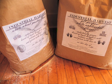 Since 2008, Seattle artist and urban planner Sarah Kavage has been exploring the world of commodities trading and its influence on economics, farming, and what we eat. This past summer she was in Chicago, inserting herself into this system in a learn-by-doing experiment to discover how an abstract “wheat futures” contract connects to real wheat, real food and real people. She purchased a 1,000 bushel futures contract on the Chicago Board of Trade and also bought 1,000 bushels of real commodity wheat. After getting the wheat milled into flour, she began giving it away at food banks, soup kitchens, farmers markets and the like, encouraging people to nourish others with it and send her documentation.